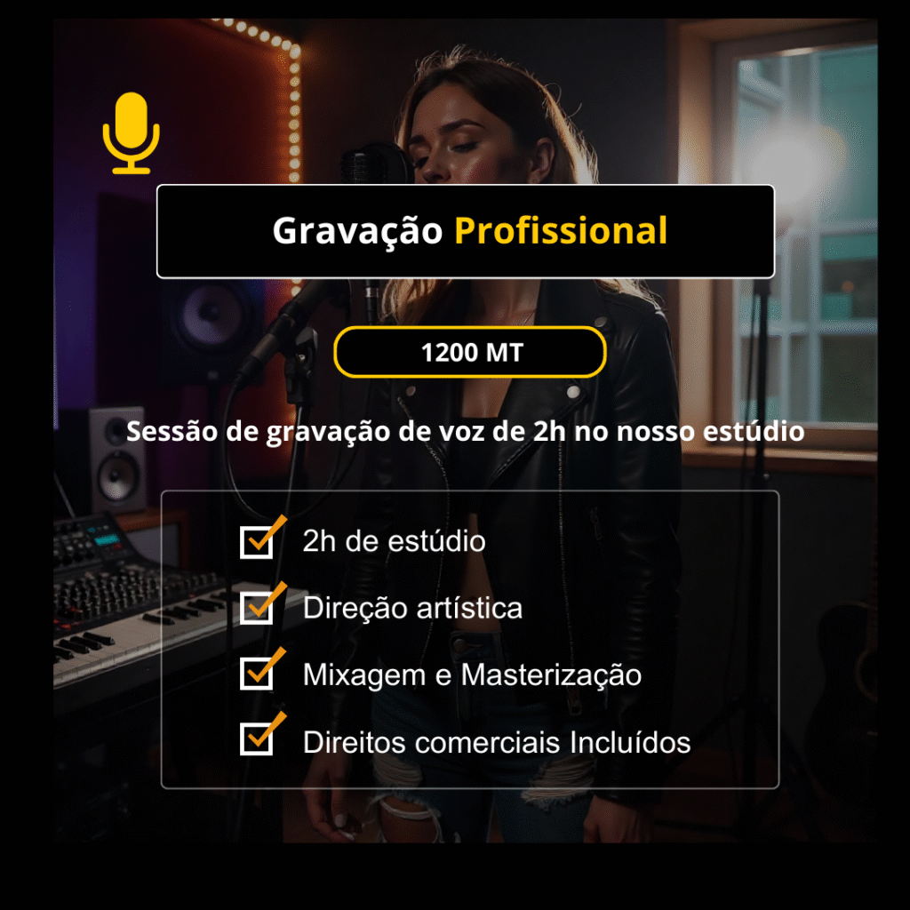Para a Voz que Precisa de Brilhar: Nós gravamos, mixamos e masterizamos a tua música para que ela soe potente, limpa e pronta para o Spotify